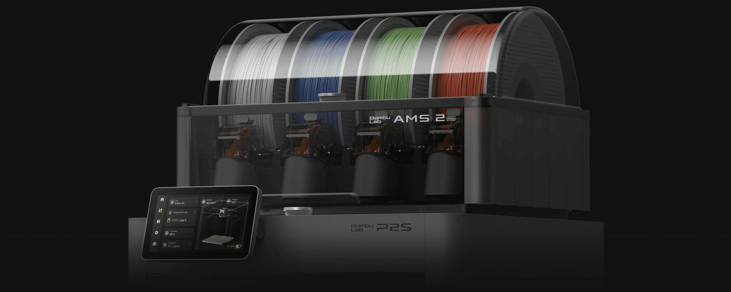 Απολαύστε το πιο αξιόπιστο σύστημα πολυχρωμίας εκτύπωσης που έχουμε δημιουργήσει μέχρι σήμερα. Το AMS 2 Pro διαθέτει βελτιωμένο σχεδιασμό για καλύτερη εμπειρία χρήστη και, το πιο σημαντικό, εισάγει την πολυαναμενόμενη ξήρανση νημάτων. Ένα πρωτοποριακό ενεργό σύστημα εξαερισμού στεγνώνει το νήμα 30% πιο γρήγορα από τη στεγανοποιημένη θέρμανση, διατηρώντας χαμηλή υγρασία για ανώτερη αποθήκευση και ποιότητα εκτύπωσης. Έρχεται μαζί όταν επιλέξετε Bambu Lab P2S Combo!