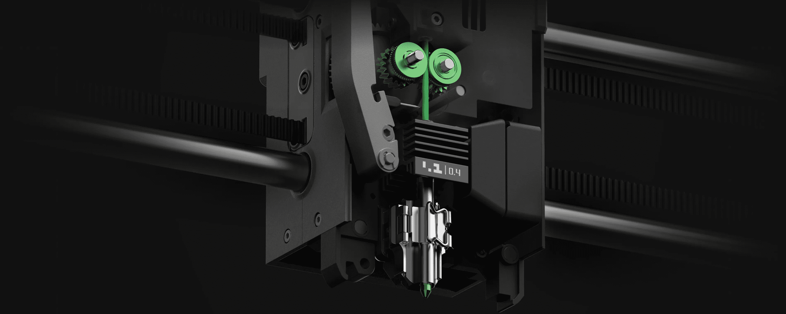 Το σύστημα εξώθησης και το ακροφύσιο της P2S είναι κατασκευασμένα από σκληρυμένο χάλυβα, προσφέροντας εξαιρετική ανθεκτικότητα και αντοχή στη φθορά. Σχεδιασμένα ειδικά για σταθερή, μακροχρόνια εκτύπωση υλικών ενισχυμένων με ίνες υψηλής απόδοσης.